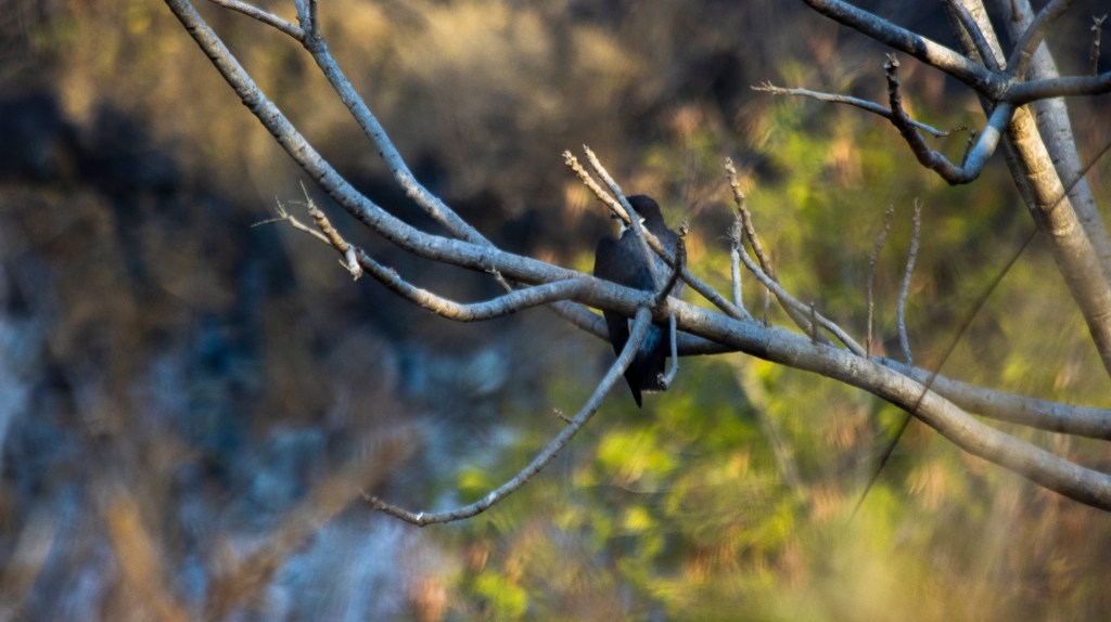 So we were sitting along an old, abandoned stone quarry on The Hill, chatting, talking about random stuff, laughing. It used to be a stone quarry many many years ago, probably before I was born, I don’t know. Over the years, a beautiful scrubland habitat formed inside the quarry that became home to a variety of wildlife. We were just enjoying the peaceful atmosphere, facing the lovely valley view. There were two Peacocks on the opposite end of the valley, chilling on the edge of a dry deciduous forest on the other end. They were sitting at the same spot for hours, just like us, chatting and laughing maybe. We could also see a pair of White Breasted Kingfishers doing something in the forest. They were far away. There was a Black Redstart, male bird, jumping on the walls of the quarry. Out of no where stepped in a completely melanistic(black) domestic cat in the quarry. We were watching it from the top. It looked like a mini Black Panther walking into the scrubs. We moved on, completely lost in our conversations. After a while, I saw the same cat looking at us from a close distance. I don’t know when it climbed the hill, but it was like a wild experience, a mini Black Panther looking towards you through the dry grass. However, there was a stray dog playing around us who also spotted it and chased it away.